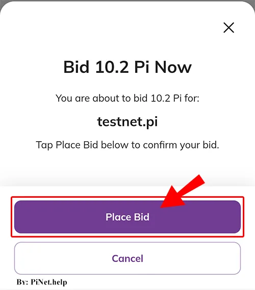 To confirm your bid, click “Place Bid.” The bid amount plus a 0.01 Pi transaction fee will be deducted from your wallet.