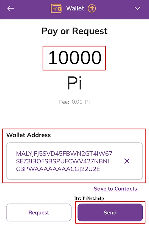 Paste your copied Pionex Pi wallet address into the appropriate field.